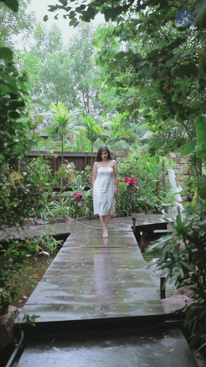 The Ivory Breeze Dori-Front Midi Dress blends simplicity with soft feminine charm. Designed in a smooth, lightweight fabric with subtle red buti-style prints, this dress offers effortless elegance for daytime outings, brunches, vacations, or minimal-styling looks. The adjustable front-neck dori enhances fit and adds a delicate detail, while the side slit gives the silhouette a modern, easy-flow feel.
